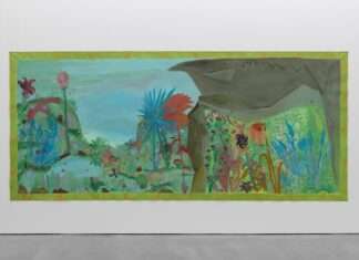De plus, cette année, la foire se dote, en plus d’un nouvel espace dédié aux discussion et conférences. L’agencement et la scénographie du restaurant ont aussi été entièrement repensés et accueillent les toiles monumentales et colorées d’Adrien Vescovi, qui bénéficie d’un remarquable solo show au Casino, Jours de lenteur.