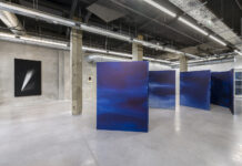 L’accent est mis sur les artistes émergents et l’on s’en réjouit, avec notamment Moufouli Bello qui fait partie du Pavillon du Bénin à la Biennale de Venise et rend hommage aux à la philosophie féministe yoruba dans des portraits aux nuances de bleu célébrant le pouvoir spirituel de transmission des femmes dans la société. Le retour à la terre mère, la décolonisation des imaginaires, les résistances aux formes du capitalisme anime cette artistes diplômée de la Cambre (Bruxelles) et du Fresnoy.