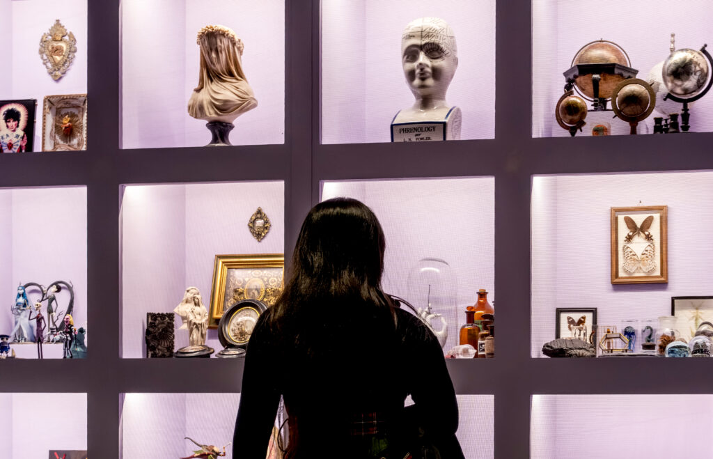Cela fait un moment car notre père aimait bien collectionner et nous avions cet esprit de collection dans la famille, en lien bien entendu à tout ce qui a rapport à la scène musicale et la littérature mais aussi des choses étranges comme les crânes, les memento mori. Étant donné notre fascination pour l’époque victorienne ou Napoléon III en France nous avons commencé à collectionner des objets comme des reliquaires faits à partir de cheveux de défunts, ce qui est un peu morbide mais reste cependant très esthétique : l’esthétisme du noir dans le Gothique. Vous trouverez aussi des éléments en lien avec la science, la médecine avec la dissection des cadavres et l’entomologie avec les insectes naturalités, des coquillages, des coraux, des pierres et aussi le sacré dans un côté église-cathédrale. Un mélange par thématiques alors que chez nous il s’agit plus d’une accumulation de mélange de tous ces domaines. Des objets qui dialoguent entre eux dans une sorte d’alchimie qu’ils soient contemporains ou anciens.