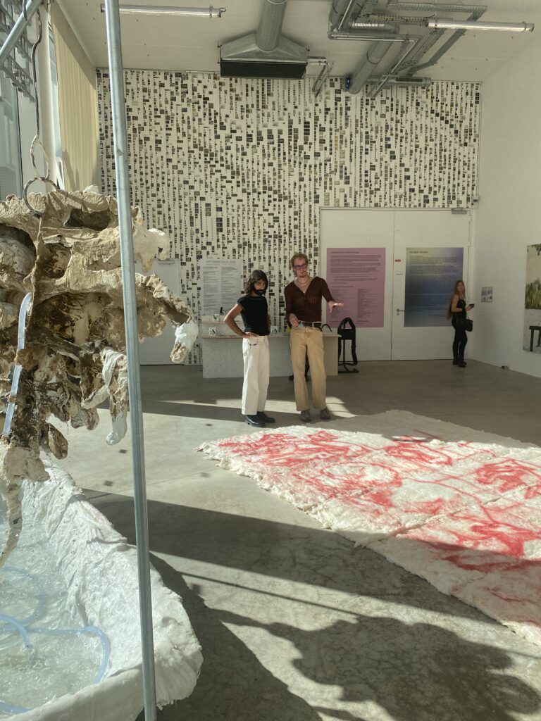 Ce qui ressort de la totalité des pratiques était : comment habiter le monde autrement, ce qui parait un sujet assez vaste mais très ancré. Les artistes évoluaient dans des espaces assez clos avec un rapport à la transmission, aux nouvelles technologies, à l’écologie, aux rituels. Les questions queer avec des effets de miroir entre le Frac et Fiminco. L’avantage était de partir d’écoles d’art et de design avec le rapport à l’objet, à l’artisanat et au graphisme à travers la création d’une typographie qu’il était difficile de montrer.