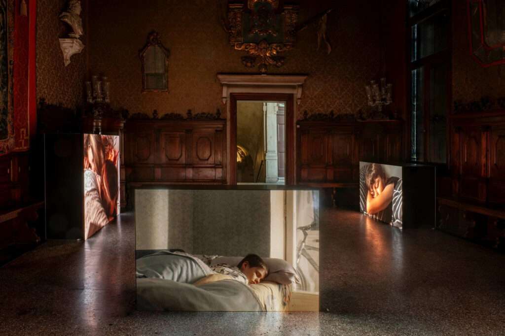 Yarema Malashchuk & Roman Khimei, You Shouldn’t Have to See This, 2024. Installation view From Ukraine – Dare to Dream, Collateral Event of the 60th La Biennale di Venezia, Courtesy of the artists (c) Valentyna Rostovikova, PRYZM and Galerie Poggi. OFFSCREEN