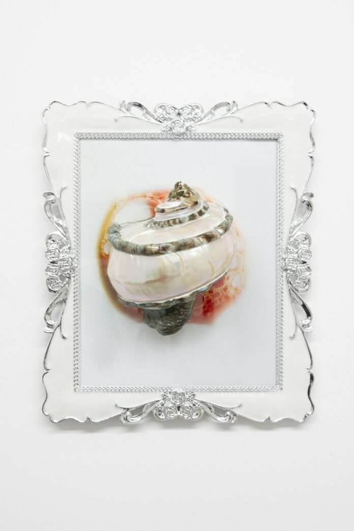 Inkjet print, seashells, faux pearls, frame. Courtesy the artist & Ulrik