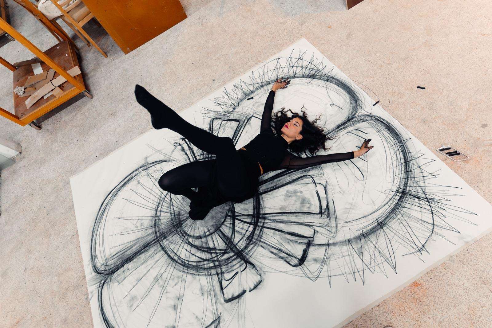L’artiste est syrienne-libanaise, d’origine arménienne, née à Toronto. Autodidacte, son langage est influencé par cet héritage multiculturel mêle dessin et performance. Pour elle l’acte performatif connecté à son retour dans son pays natal. « Into the Void » la série est comme un espace de retrait, une bulle dans laquelle elle nous invite à plonger. Une connexion intime et universelle, spirituelle et sensorielle, à portée émancipatrice.