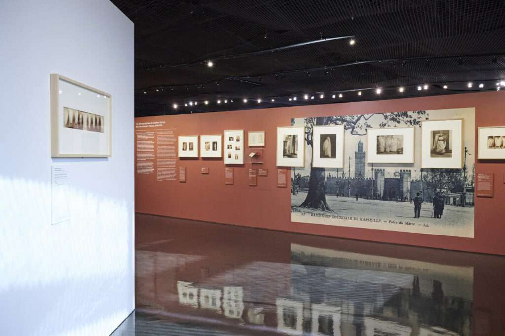 Annabelle Lacour. C’est une collaboration qui s’est construite sur plusieurs années depuis notre première rencontre avec Hoda Afshar en 2019. Elle était alors en résidence à Paris et avait commencé à s’intéresser aux photographies coloniales réalisées en Afrique du Nord, en particulier les cartes postales orientalistes du « harem colonial [1]», des images stéréotypées et érotisantes de femmes voilées ou dévoilées, parfois dénudées. L’artiste se demande comment apporter une réponse à cette imagerie orientaliste sans réactiver la violence de ces clichés qui ont déjà tant circulé. Elle va donc élargir sa recherche à d’autres fonds pour explorer les manières dont la photographie a été pratiquée au début du XXe siècle en Afrique du Nord en contexte colonial. Lors de notre première rencontre au musée en 2019, je lui parle de différents corpus dont le fonds de Gaëtan Gatian de Clérambault dont l’histoire et la singularité visuel en font un matériau particulièrement intéressant et intrigant. Il s’agit d’un fonds important d’environ un millier de photographies. De nombreux artistes mènent des recherches à partir de la collection photographique, mais cela n’aboutit évidemment pas systématiquement à des projets d’exposition. Avec Hoda Afshar j’ai rapidement pensé qu’il y avait un sujet très intéressant pour une exposition au musée, à la fois dans la manière dont l’artiste s’est emparée de ce fonds, et les questions qu’elle soulevaient autour de l’histoire du médium photographique qui dépassaient largement la dynamique de la représentation. L’artiste réfléchit depuis longtemps à la façon dont le corps des femmes a toujours été au cœur de luttes politiques et idéologiques en particulier dans le monde arabe, et comment cela passe beaucoup par l’image. Cela est également lié à son propre parcours de migration, puisqu’elle a quitté l’Iran pour rejoindre l’Australie en 2007. Quand elle arrive en Australie, elle est marquée par la manière dont les autres perçoivent son identité de femme iranienne.