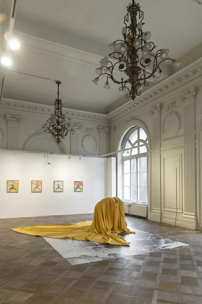 J’ai rencontré Barbara Cuglietta à son arrivée au Jewish Museum en 2021 après avoir dirigé la Cambre avec une volonté d’ouverture et de questionnement autour de thématiques telles que l’appartenance, l’exil, le territoire, l’identité. Avant la fermeture du musée et sa complète rénovation, la directrice imagine « There is a crack in everything » à partir d’un titre de Leonard Cohen et transforme ce bâtiment aux multiples vies (prison, école, entrepôt d’instruments de musique…) en véritable palimpseste et laboratoire in situ. Comme la métaphore d’un monde en lente décomposition, la précarité devenant un sas de latence à commencer par la façade du musée investie par Adrien Vescovi avec ses tableaux suspendus et offerts aux intempéries comme lors de son intervention au Casino Luxembourg « Jours de lenteur ». Un concentré de temps qui flotte au vent. Puis l’on pénètre dans les arcanes de chaque salle et on se laisse embarquer dans un exil intérieur avec nostalgie. Les mountaincutters étant donné le choix de matériaux pauvres et conducteurs et leur emplacement en circuit fermé, participent à cette mise en abyme de la notion de fragilité en investissant les failles et fissures du bâtiment. De même avec Marianne Brenhaut et l’installation « à chacun sa faille » constituée de multiples miroirs tranchants est tout particulièrement agissante.