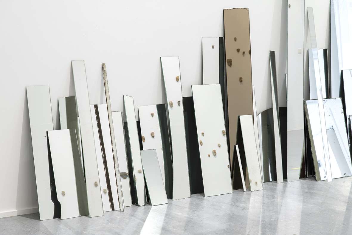 Dirk Snauwaert, directeur, est le commissaire de l’exposition « Nameless ». L’artiste iranienne basée à Berlin qui avait participé à l’exposition inaugurale du WIELS revient avec un corpus d’œuvres inédites engageant des matériaux et dispositifs renouvelés comme avec la série des « Side Leaps ». Le titre « Nameless » renvoie à l’absence de nom, d’état, à ce qui a été refoulé, révoqué, l’innommable. Des choses et des objets dont l’indétermination et l’instabilité, la fragmentation et le déplacement irriguent toute la démarche de l’artiste en écho aux traumatismes des guerres et de l’exil.  L’intervention dans la cage d’escalier sur l’ancien silo du bâtiment est très impressionnante : comme une enseigne lumineuse privée de sa fonction et détournée en glyphes éteints et muets, d’une écriture qu’elle est la seule à maîtriser.