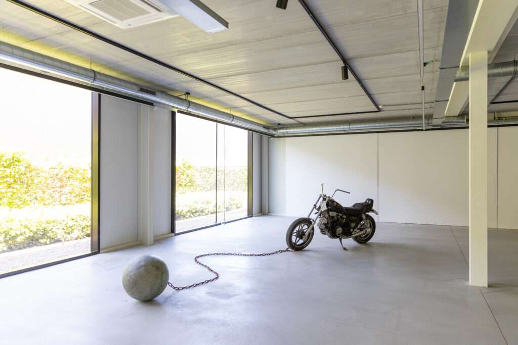 Motorcycle with stone ball and chain, size varies, 2025 courtesy the artist & UITSTALLING Gallery pic. Lennert Berx @kunstvanger