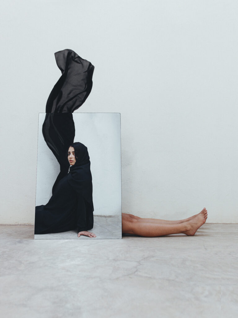 La photographe autodidacte marocaine a une démarche féministe et engagée à partir d’une relecture du thème du miroir et de l’auto-portrait dans l’histoire de l’art (« L’origine du monde »). Elle fait partie de ces nouvelles voies qui s’insurgent contre le poids des conservatismes, tout en finesse depuis le toit de sa maison étant donné le caractère disruptif de ces images. Son usage du miroir renvoie à Francesca Woodman qui travaillait aussi avec une grande économie de moyens.