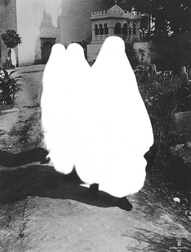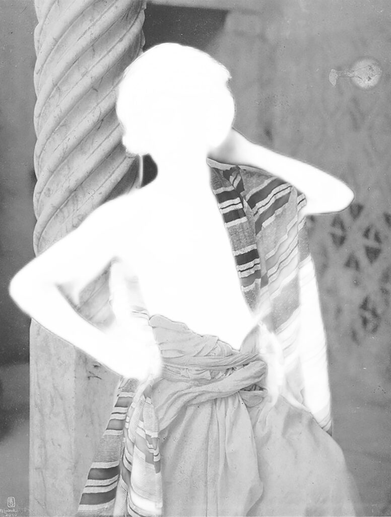 Autre séquence à travers une relecture décoloniale des archives du studio Lehnert & Landrock, actif à Tunis au début du XXème siècle, entreprise avec exigence et sans tomber dans certains pièges. Pour mener à bien cette entreprise, Nathalie Herschdorfer a nommé un comité scientifique constitué de Nadia Radwan, Professeure associée, responsable du département Arts Visuels à la HEAD – Genève, Beya Othmani, Commissaire d’exposition indépendante, Chercheuse attachée au MoMA NY et Christelle Taraud, l’historienne et féministe, maîtresse de conférence à NYU Paris, associé à deux artistes contemporaines : l’espagnole Gloria Oyarzabal et la saoudienne Nouf Aljowsiraysir, récemment exposée au Jeu de Paume autour de l’IA.