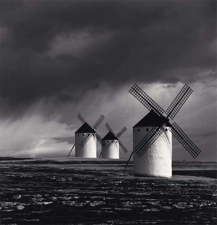 Michael Kenna, Quixote’s Giants, Study 1 (Les Géants de don Quichote. Étude 1), tirage gélatino-argentique, Campo de Criptana, La Manche, Espagne, 1996 © Michael Kenna
