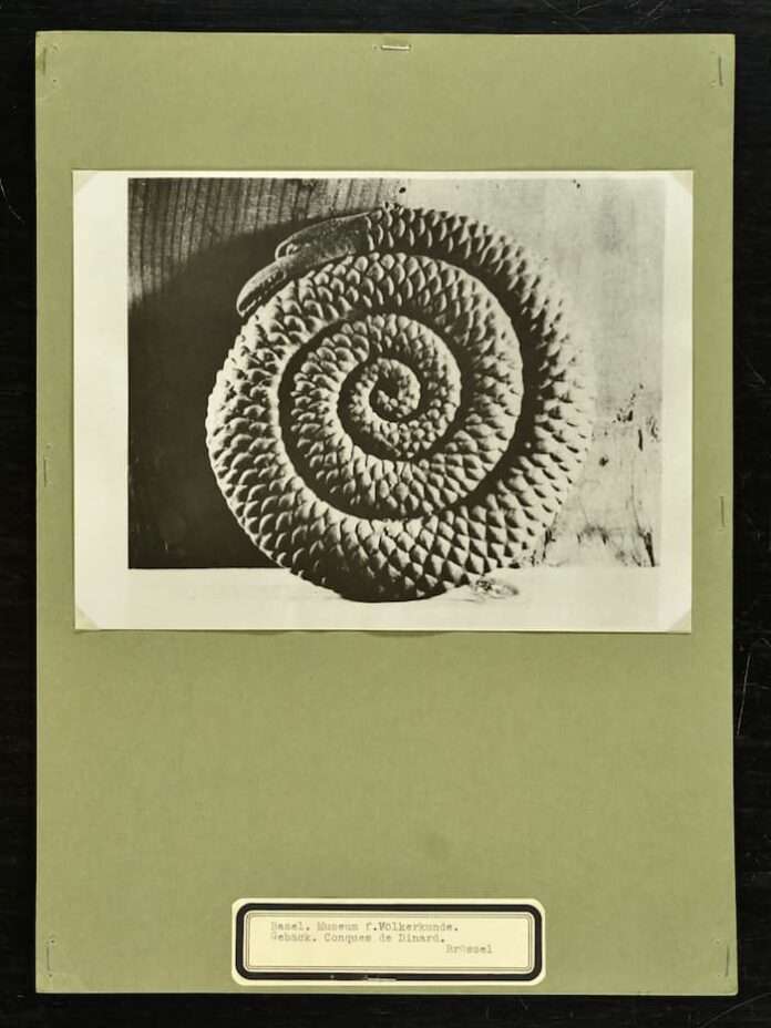 Il s’agit d’un travail de la chercheuse en culture visuelle Zoé Keller et de l’artiste Batia Suter qui collaborent pour la première fois autour des archives Eranos. Ce grand corpus d’images (3 000) a été réuni entre les années 1920 et 50 par la spiritualiste Olga Fröbe-Kapteyn, autour des réflexions du psychiatre Carl Jung sur l’inconscient collectif et les archétypes. C’est une collection qui est traversée par beaucoup d’idéologies communes dans les années 1920-50, correspondant à des heures très sombres de l’Europe. Il y avait aussi ce souhait de penser l’humanité comme une sorte d’unité. Ces idéologies qui sous-tendent ces archives sont ensuite aussi analysées, critiquées par Keller et Suter. Zoé Keller a écrit un message très pertinent sur comment on peut continuer à regarder ces archives, les mobiliser à l’aune d’une pensée contemporaine critique.