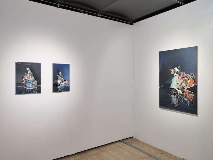 Cela rejoint, d’une certaine manière, la logique du trompe-l’œil, tout en la dépassant. Ce qui m’intéresse, ce n’est pas tant l’illusion que ce mouvement vers l’image, cette tentative d’y pénétrer, toujours contrariée. Dans ma pratique, la photographie intervient comme un outil de transformation. Je travaille à partir d’images, souvent issues de peintures de maîtres flamands, que je découpe, plie, fragmente et recombine. Ce processus transforme profondément leur statut, l’image cesse d’être une représentation pour devenir une matière. Elle est ensuite manipulée, photographiée, puis réinterprétée en peinture.