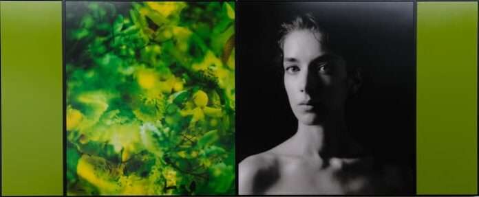 L’œuvre sollicite également le regard du spectateur. Les figures féminines, représentées frontalement, semblent fixer le visiteur dans une forme de convergence visuelle. D’une beauté presque irréelle, elles apparaissent hors du temps et de l’espace, acquérant ainsi une dimension universelle. La figure féminine occupe d’ailleurs une place centrale dans l’ensemble de son œuvre. Chaque portrait est accompagné d’une composition florale retravaillée artificiellement : par superposition de négatifs, l’artiste construit des images composites. Ce procédé renvoie à l’un de ses thèmes de prédilection, celui de la manipulation du vivant et des pensées, dans une société dominée par des instances de contrôle. Une préoccupation déjà présente dans son travail dès les années 1980, et qui demeure aujourd’hui d’une troublante actualité.