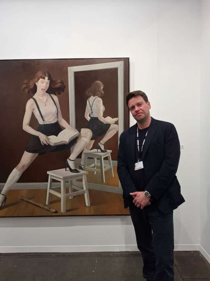 Quentin Grosjean devant l’oeuvre de Von Wolfe, Maruani Mercier, Art Brussels 2026 photo MdF