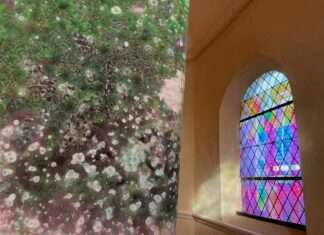 Oleñka Carrasco PATRIA La Casa, corrosiva vue de l'installation Chapelle Saint-Prix, Montreuil-sur-Brêche courtesy de l'artiste Adagp 2025 photo Fred Boucher